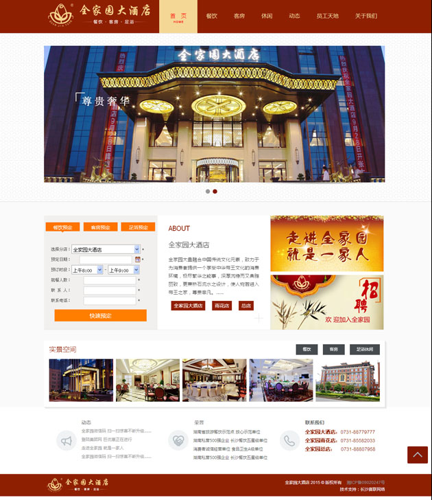 全家園大酒店按五星級標準建造的集客房、餐飲、康樂為一體的綜合型高端商務精品酒店 。網站上不僅展示了全家園大酒店,還展示了全家園雨花店、老店,及全家園實業旗下的四一農業、濱江會所等。可實現在線的餐飲預定、客房預定、足浴預定,及行政管理中的人才招聘等。